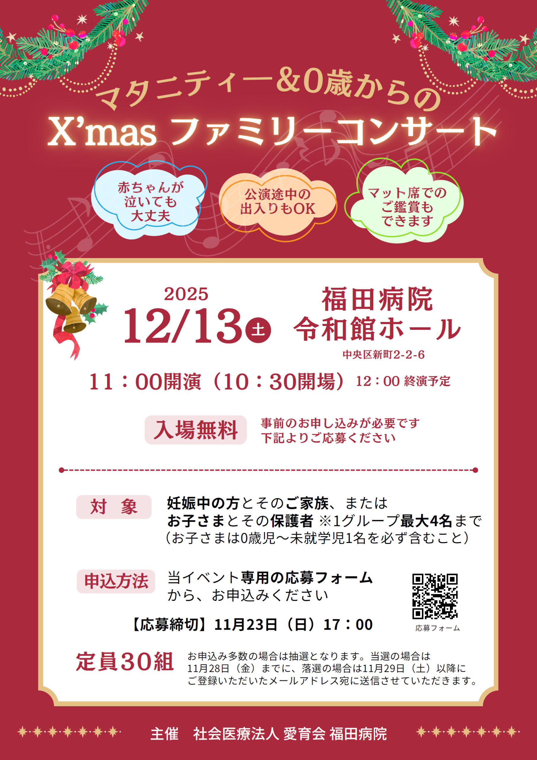 マタニティー&0歳からのX‘masファミリーコンサートの募集