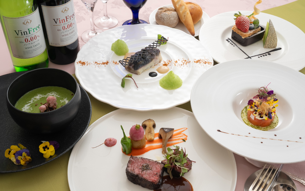 和・洋・仏のシェフが常駐する4ヶ所のレストランで、おいしさと栄養バランスを追求したお食事をご用意しています。「福田病院 母と子の農園」のお米や、有機野菜をはじめとするこだわりの県産食材、無添加食品などを用いた健やかな美食をお楽しみください。