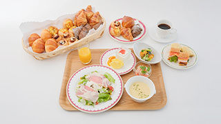 月曜日の朝食はビュッフェスタイルです。お好みでコアラ工房の焼きたてパンや料理を選んでお召し上がりいただきます。卵料理はその場でシェフが手作りいたします。