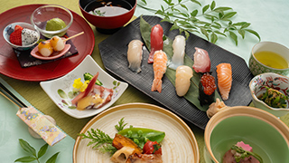 和食・四季亭は、寿司、天ぷら、手打ちそばなどがその場で作りたてをお召し上がりいただけます。ガラス張りの室内からは季節ごとの景色がお楽しみいただけます。