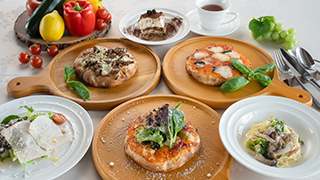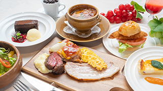 レ・セゾンは四季を意味し、四季折々の熊本城を望むことができます。ビュッフェスタイルやセレクトメニューを取り入れ、ピザやパンは焼き立てをお召し上がりいただきます。