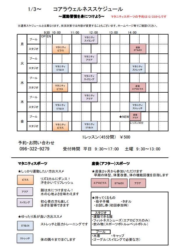 コアラウェルネスより1月のスケジュールについてのお知らせ