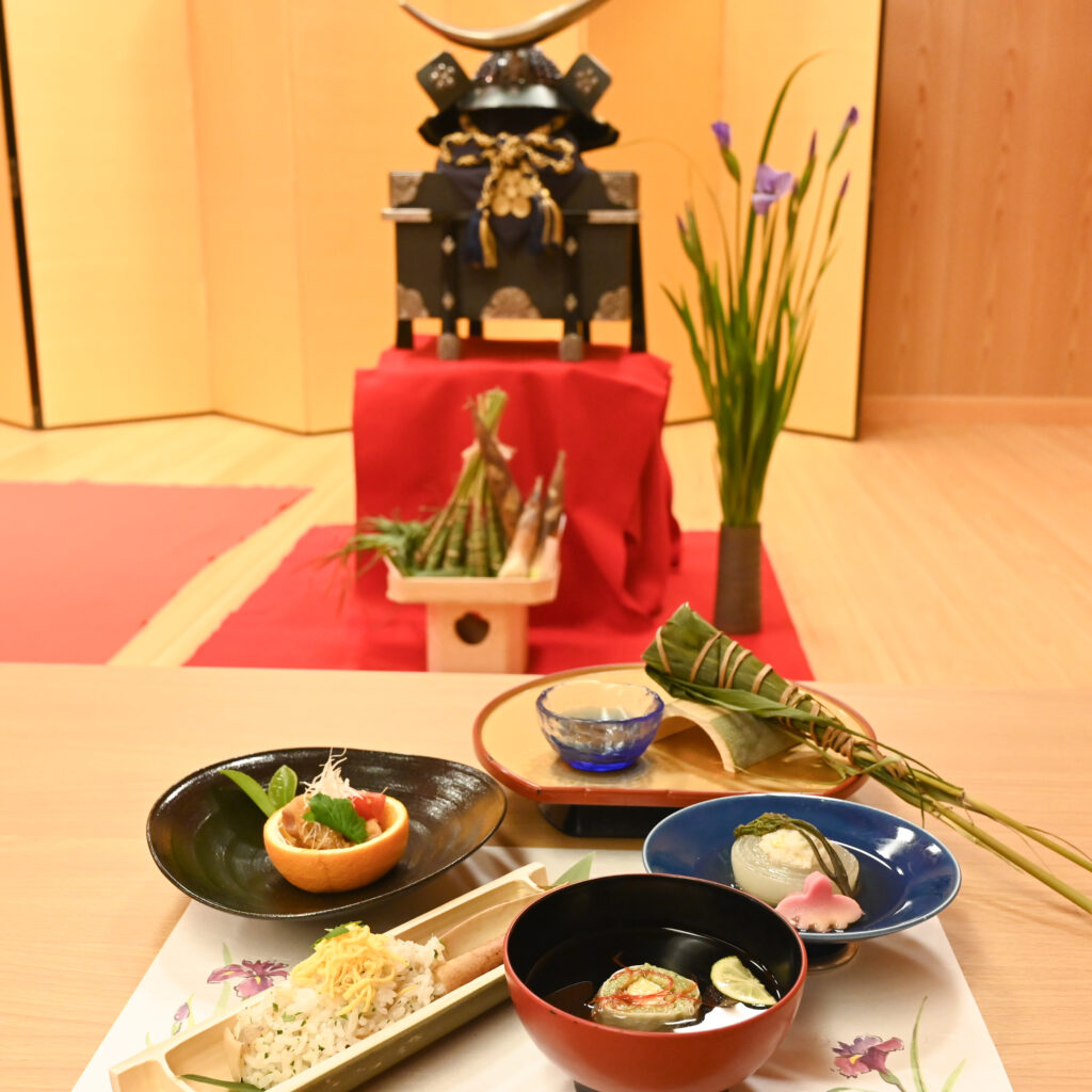 お料理には筍や新玉ねぎなど旬の食材をふんだんに使用し、鯉のぼりや兜など端午の節句にちなんだ飾りつけも味わいを引き立てています。