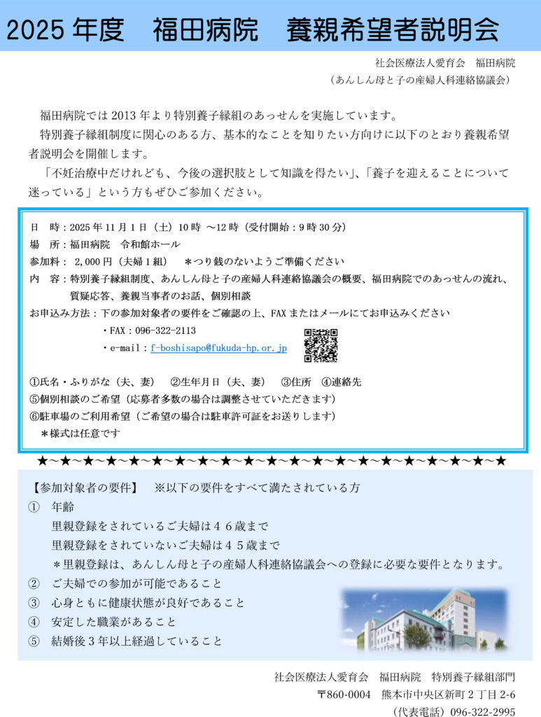 2025年度 特別養子縁組養親希望者説明会