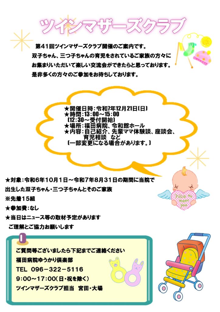 「第41回 ツインマザーズクラブ」を開催いたします。