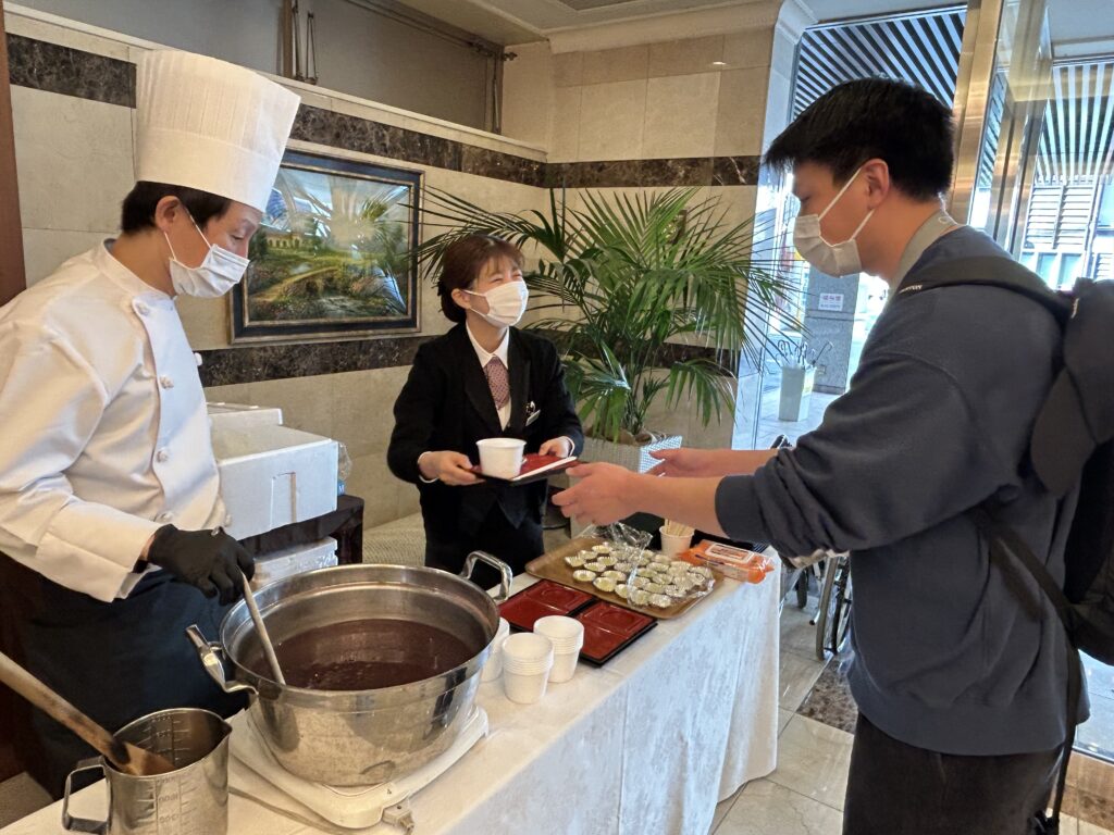 ご来院された患者様やご面会等で来院されたお客様にも、1階西棟玄関前でぜんざいをお召し上がり頂きました。