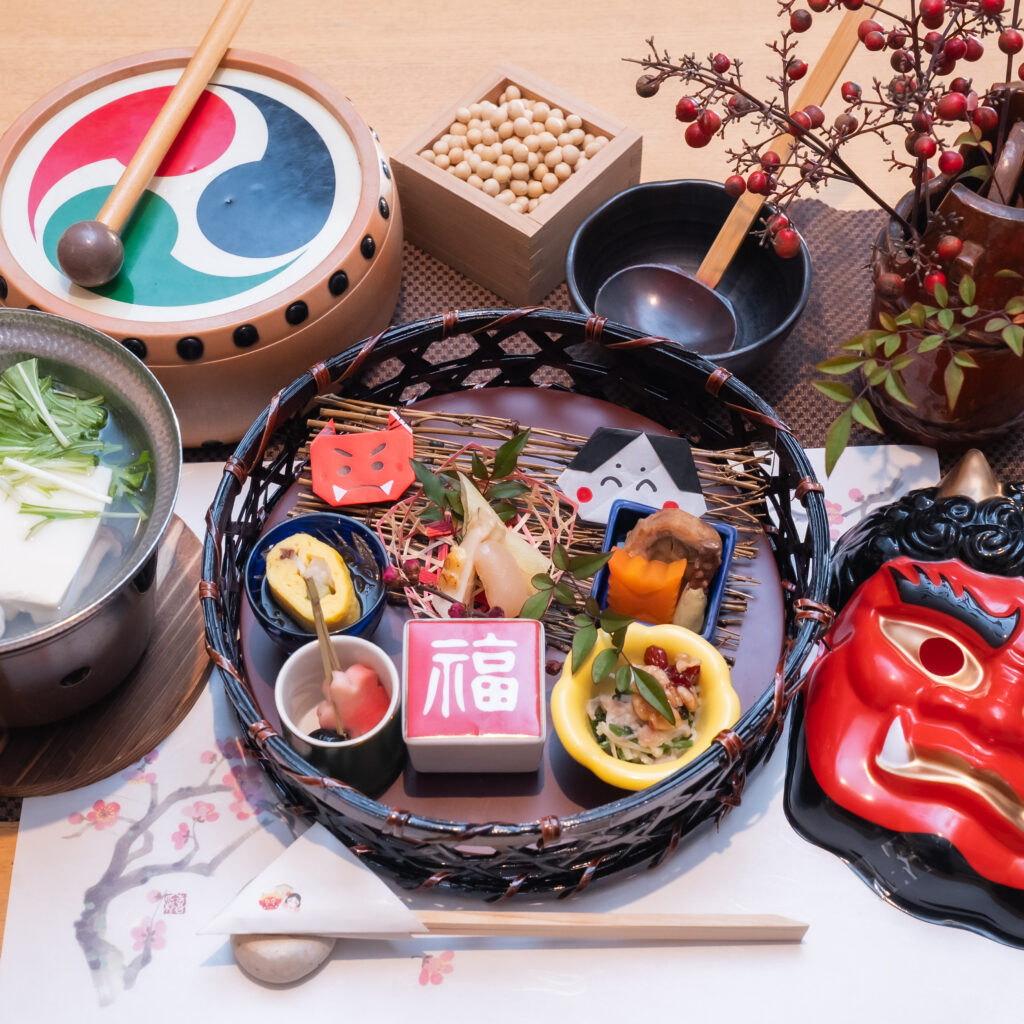 食事の後には、「鬼は外、福は内」のかけ声の中、豆まきもお楽しみ頂きました。