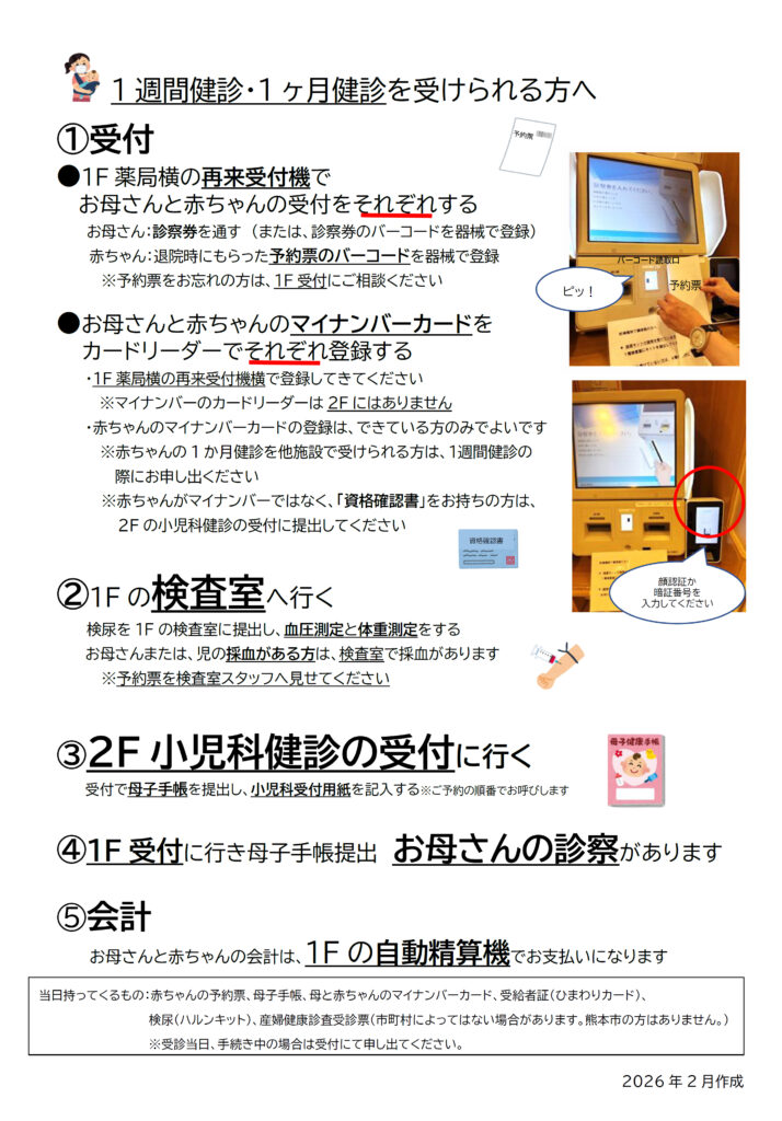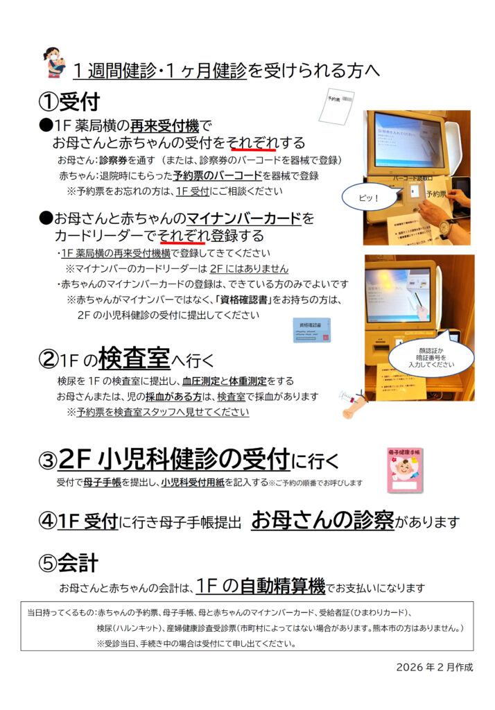 小児科【1週間健診】【1ヶ月健診】を受けられる方へ