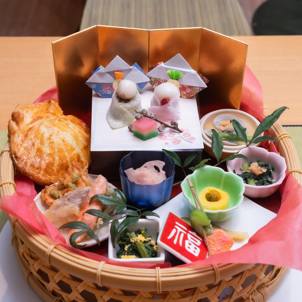 福田病院では、3月3日の夕食に和食レストラン『四季亭』にて、桃の節句にちなみ「桃の節句御膳」をご用意いたしました。